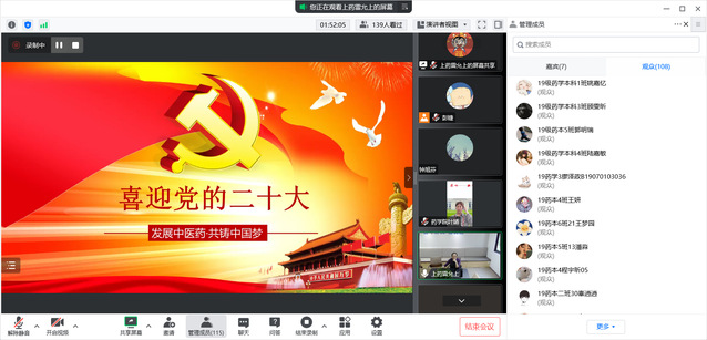 为进一步弘扬劳模精神、劳动精神、工匠精神,发挥先进典型人物榜样引领作用,引导大学生崇尚劳动、尊重劳动,传承弘扬工匠精神,9月29日下午,药学院举办的“匠心——传承与融合发展”劳模线上讲座成功举办。本次讲座邀请到上海市非遗物质文化遗产项目“六神丸”制作技艺传承人上海工匠张雄毅,学院党总支副书记叶婧主持,学生党员、入党积极分子等140余学生参加。