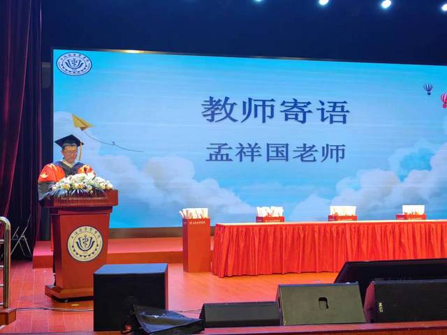 孟祥国作为药学院教师代表上台为毕业生们带来寄语,提出三点希望:一是持续学习与自我成长、二是坚守初心,追寻梦想、三是珍惜人际关系。最后孟祥国老师告诉毕业生们,人生不是一场马拉松,而是一场接力赛。愿毕业生们在人生的旅途中继续保持初心,勇敢面对挑战,追寻自己的梦想,并用智慧和勇气创造出属于自己的辉煌!愿毕业生们在人生的征途中,前程似锦,光芒四射,一帆风顺!