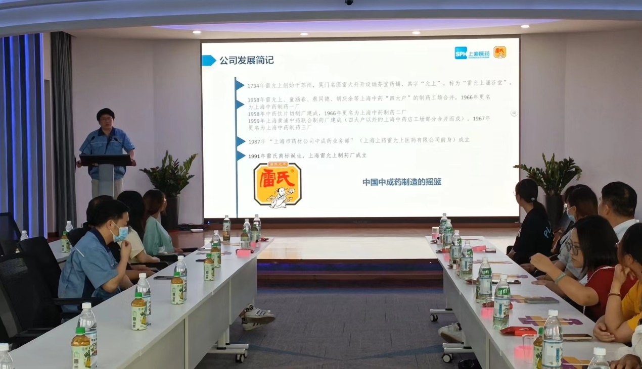 2023年7月10日上午,为了让新生们对专业前景有进一步的认识和了解,学习劳模精神,培养行业认同感和使命感,药学院党总支书记詹昌明、就业专员施春燕组织药学院16名学生到上海雷允上制药总厂进行参观学习。上海雷允上制药总厂对来访师生表示热烈欢迎,公司党群工作部主任助理李剑峰详细为同学们介绍了上海雷允上的发展史、企业文化、产品文化以及公司概况,表达了上海雷允上坚持老字号传承的“创新引领,品质优先,服务至上”理念,秉承“创新,诚信,合作,责任,专业”的核心价值观,落实“大产品,大品牌,大健康”的发展战略,立志于振兴中华老字号的目标。让药学院学生们对制药行业心怀敬畏之心。