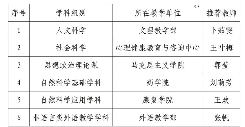 喜报:参加第四届上海高校青年教师教学竞赛的推荐教师公示