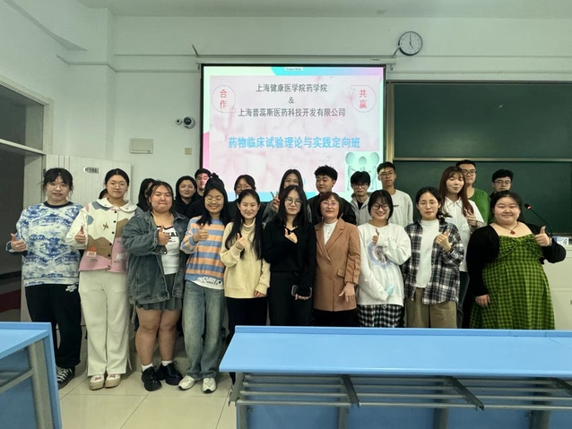 此次合作定向班主要采用理论与实践相结合的教学模式,开设《药物临床试验理论与实践探究》课程,共16学时。通过课程宣讲,药学院共有33名学生参与培训。课程内容涵盖药物临床试验流程、SMO简介、CRC管理模式及其职责、临床试验中央随机系统、临床试验药物管理、伦理法规、受试者管理、临床试验质量控制与保证等多个方面。课上,普蕊斯(上海)医药有限公司授课老师分享了临床试验案例,让学生在实际操作中深化理论知识,加强知识储备,提升实践能力。此外,双方还建立了严格的考核机制,确保学生能够全面掌握CRC所需的专业技能与知识。课后,学生们将获得上海健康医学院药学院与普蕊斯(上海)医药有限公司联合颁发的结业证书,为后续学生职业规划以及就业奠定基础。