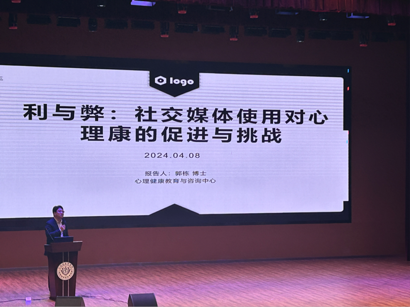 在讲座中,郭老师通过对社交媒体中信息的分析,让大家对社交媒体有了更全面的了解。随后,他围绕“手机与社交媒体的使用方式”、“社交媒体对心理健康的促进”、“社交媒体对心理健康的挑战”、“社交媒体对心理健康的负面影响”、“如何正确使用手机和社交媒体”等方面,结合生动的案例和实用的技巧,引导大家深入思考。