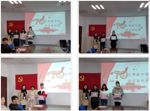 为紧紧围绕庆祝中华人民共和国成立70周年这一主线,深入学习贯彻习近平新时代中国特色社会主义思想和党的十九大精神,药学院学生党支部以“个人”与“国家”关系为视角,在学生群体中开展了“礼赞新中国,奋进新时代”征文活动。2019年11月19日下午,在药学院党总支的指导和支持下,药学院学生党支部在南苑2号楼702会议室举行了 “礼赞新中国,奋进新时代”征文活动颁奖仪式,药学院学生党支部书记钟旭芬老师出席了本次颁奖仪式。