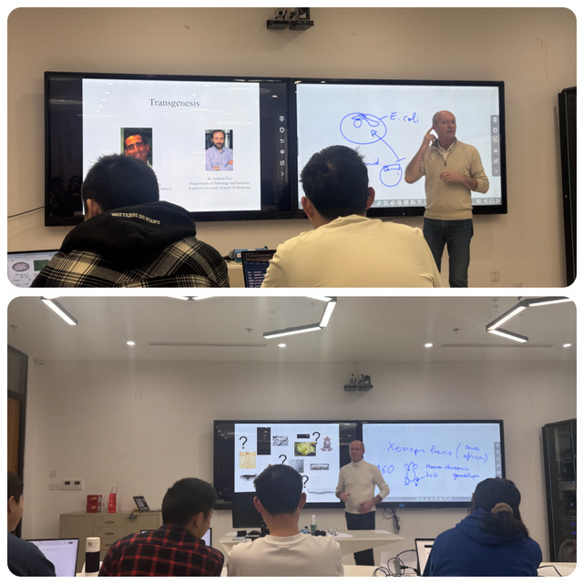 授课首日,同学们提前来到教室,迫不及待地等待上课。Galas教授以“新年是万物更新的起点,衰老是生命的过程,而科学让我们有机会更健康、更优雅地老去。”作为开场白,他巧妙地将节日的“辞旧迎新”与课程的“解码生命”结合起来,让原本对学术和语言双重紧张的同学们瞬间放松起来。师生在笑声中开启“解码抗衰老”的学习。