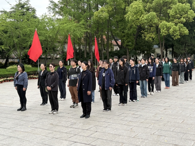 在川沙烈士陵园,全体师生怀着崇敬之心举行庄严祭扫仪式。奏唱国歌后,学生代表敬献花篮,全体默哀并行三鞠躬礼。在肃穆的《国际歌》旋律中,大家深切缅怀革命先烈的丰功伟绩。