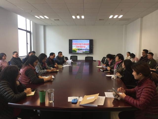 根据学校党委工作部署,药学院中层干部任期述职测评会于3月6日下午在南苑2号楼802会议室召开。校组织部副部长詹浩玲莅临指导,药学院班子全体成员、药学院教师参加本次会议。会议由药学院院长兼党总支书记徐一新主持。