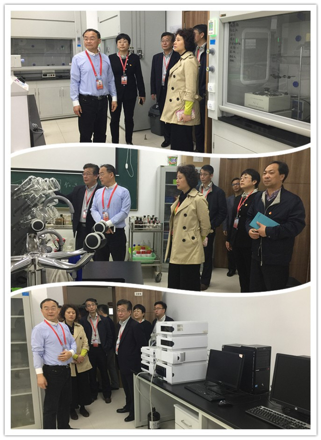 调研会前,与会领导先行到药学实验教学中心进行调研,对实验室的运行及管理情况进行了解。回到会议室后,首先由徐一新院长介绍药学院发展现状与发展思路,重点从药学院“十三五”规划落实情况、专业学科建设对标与思考、大学章程落实情况、学院投入与产出情况等四个方面进行汇报。接着,发展规划处钱芝网处长反馈药学院“十三五”规划及学校章程执行中的问题,提出了意见和建议。教务处张梅处长反馈药学院“十三五”规划落实过程中在教育教学方面存在的不足和建议。