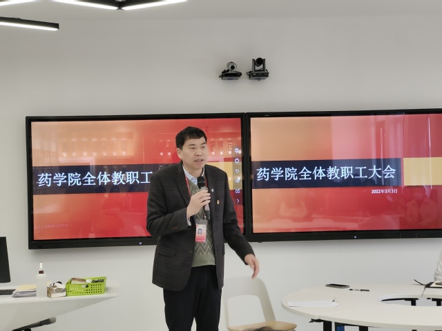 3月3日中午,药学院在502会议室召开全体教职工大会,全体药学院教职工参加会议,会议由詹昌明书记主持。