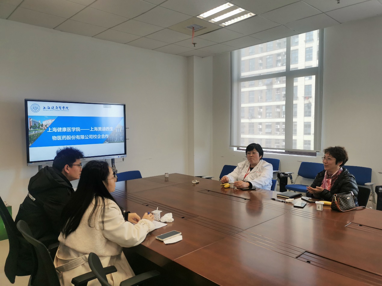 为促进我校产教结合,创新人才培养方式,2022年3月8日中午12点10分,上海美迪西生物医药股份有限公司王登成、杨柳与学院领导在南苑2号楼702交流。药学院院长徐一新、党总支副书记叶婧、就业专员施春燕参加此会议。