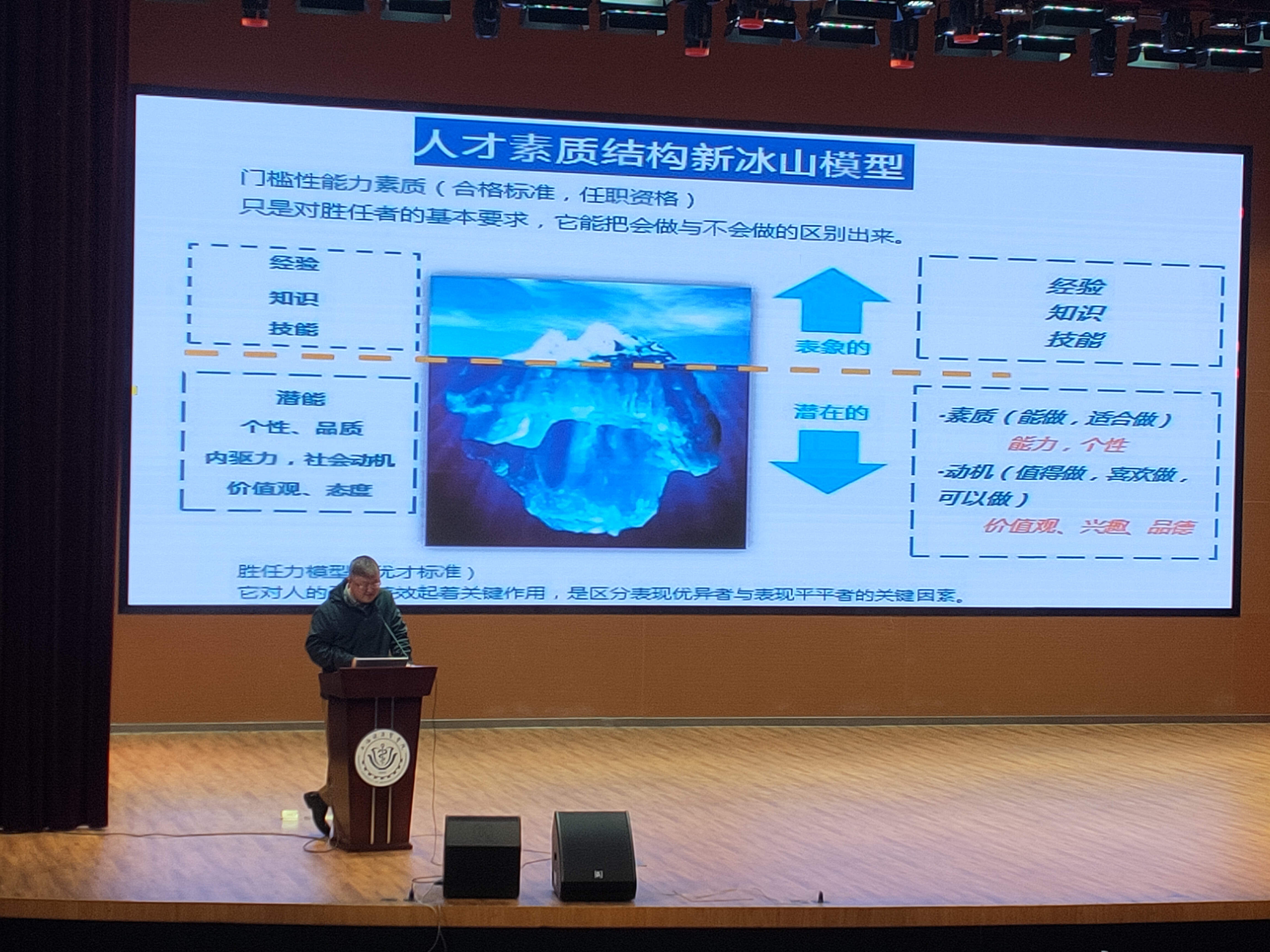 随后顾凯老师为大家介绍了新药研发的新技术、新方向,在谈到生物医药行业需要的人才时,顾凯老师以冰山模型为例,指出表面的冰山只是表示某一行业的门槛性能力素质,但冰山之下才是其成为行业佼佼者的原因和标准。鼓励每一位同学打造自身核心竞争力,坚持长期主义,明确自己的人生目标,做时间的朋友。最后本次讲座在同学们和顾凯老师热烈交流互动中结束了。