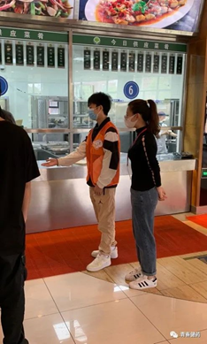 在走访食堂关心学生就餐过程中,对于学生们在校的饮食状况,辅导员也表示关心,深入食堂慰问勤劳的志愿者同学,查看食堂的菜品供应情况等,关心学生用餐问题,叮嘱学生要配合志愿者工作,公共场合不聚集,间隔排队打饭,一人一桌有序就餐。
