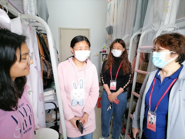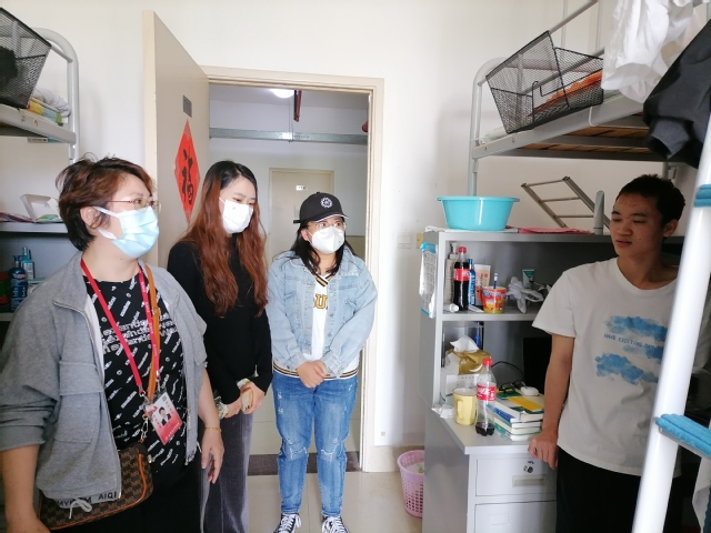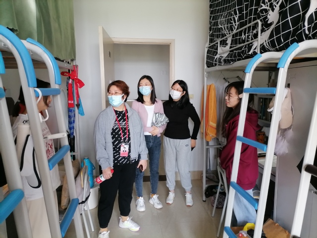 在走访学生寝室的过程中,老师们与同学们进行了亲切的交流,实时掌握了学生的思想和心理动态,针对学生普遍关心的疫情防控、线上教学、实习就业、升学等问题进行耐心的解答和正确的引导,切实了解到了学生的学习、生活、心理适应等状况。除此外,还提醒学生疫情防控不能放松,注重寝室通风及卫生问题,并且建议同学们利用好在校的时间,做好学习规划和职业发展规划,遇到问题及时向学院及辅导员汇报,以积极乐观的态度和饱满的精神状态投入到学习和生活中。